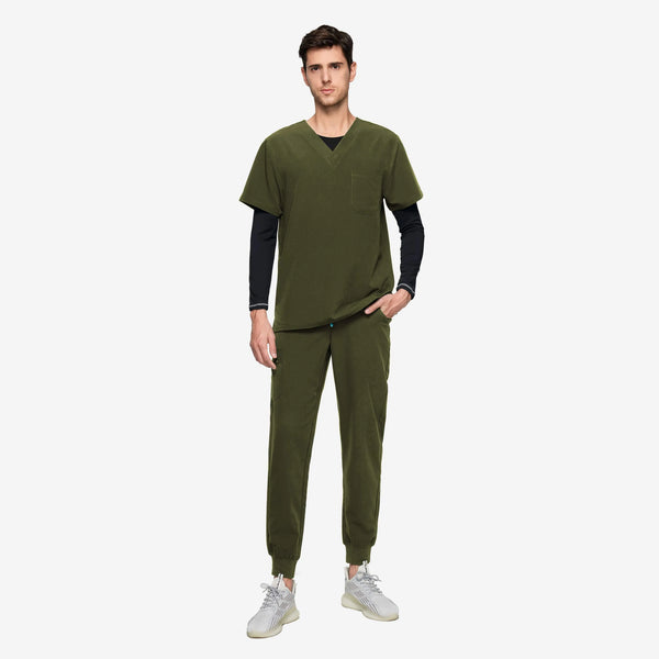 The Virtis™ set combines a sleek V-neck top and jogger pants, offering comfort, style, and durability.