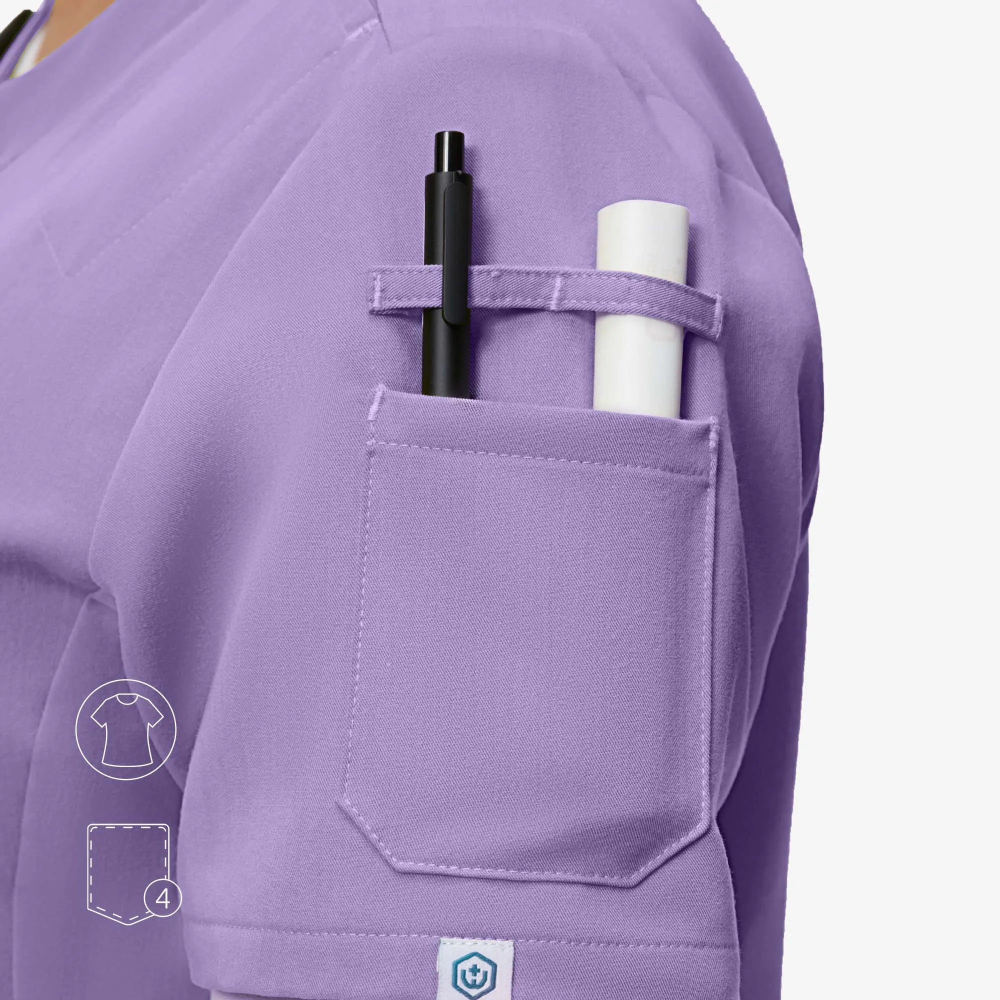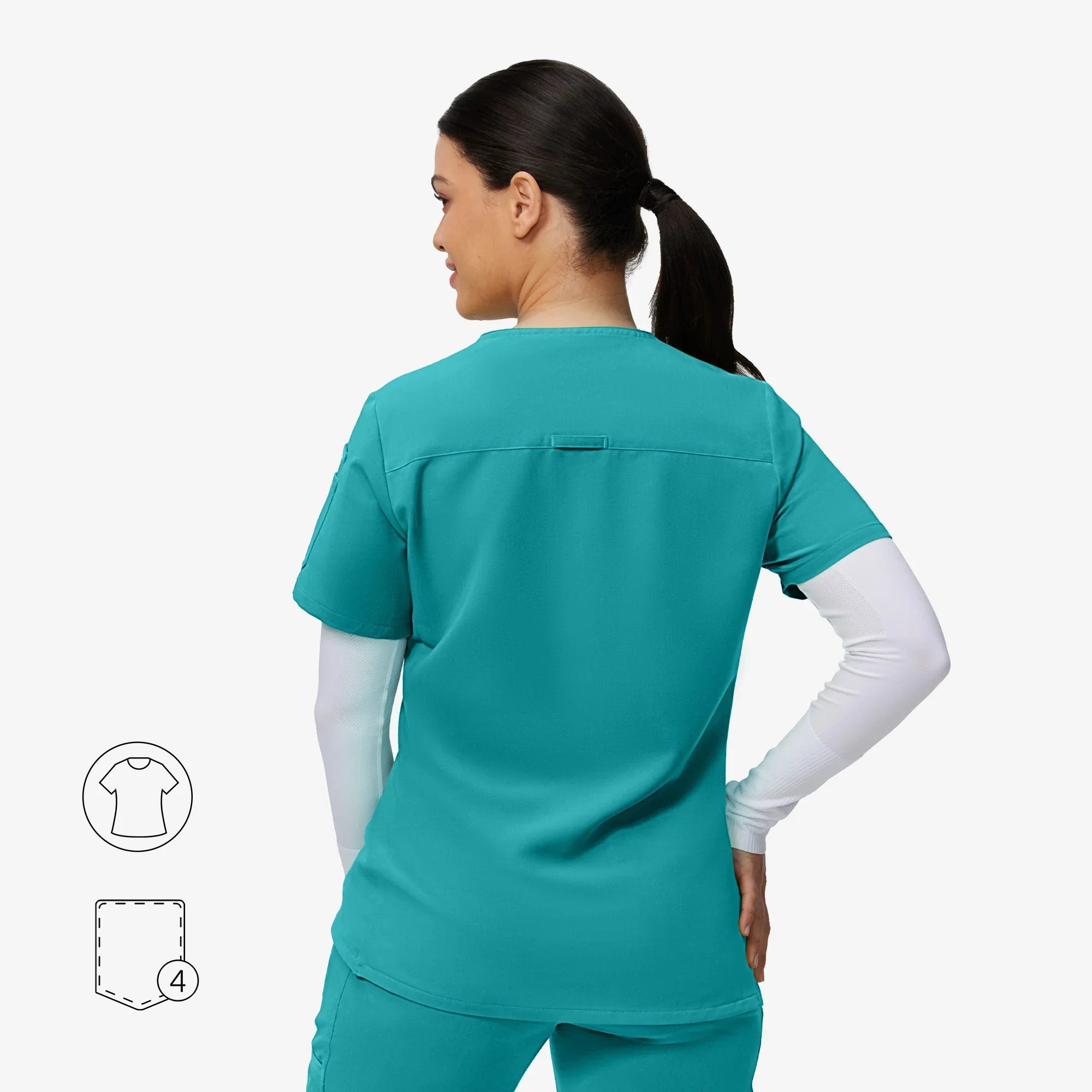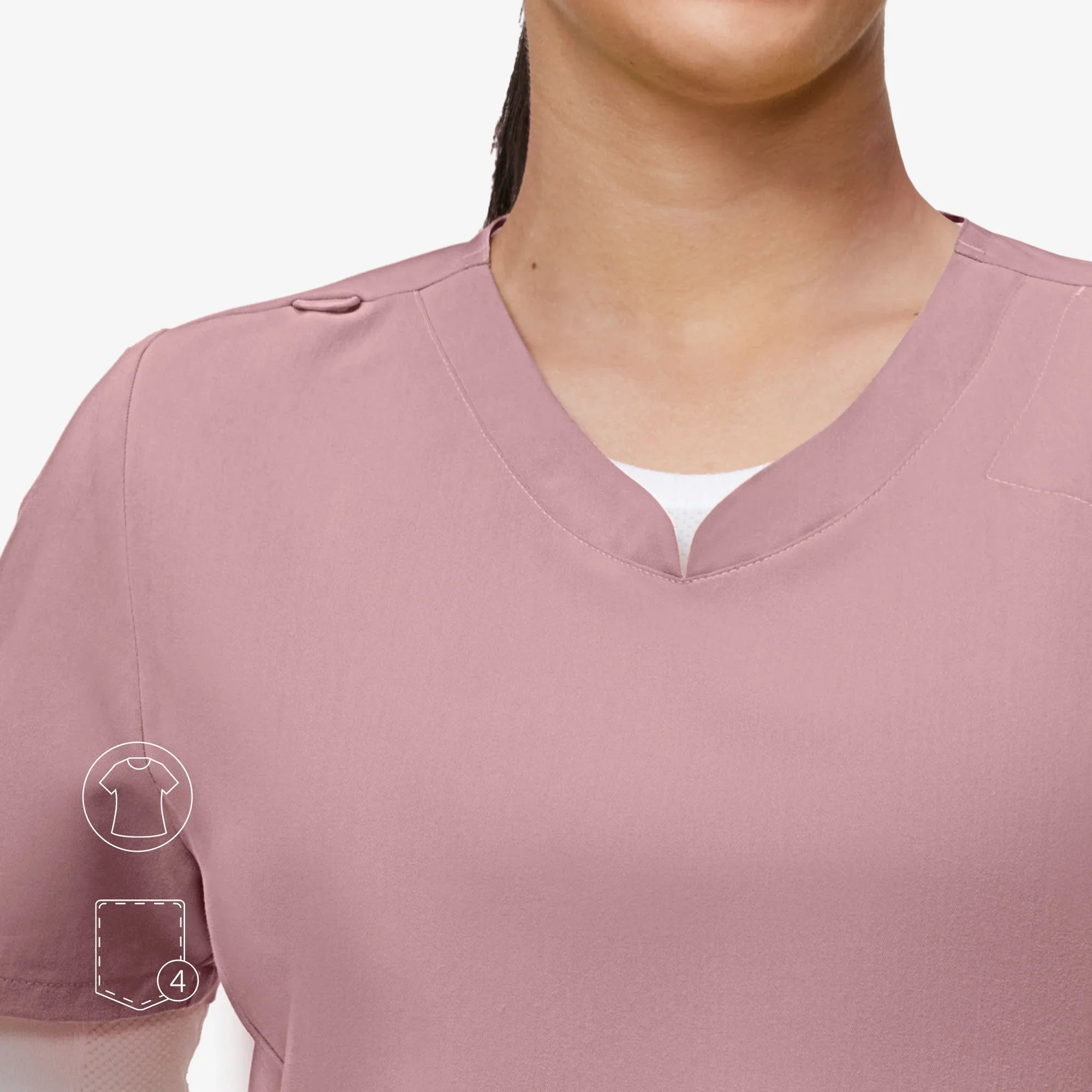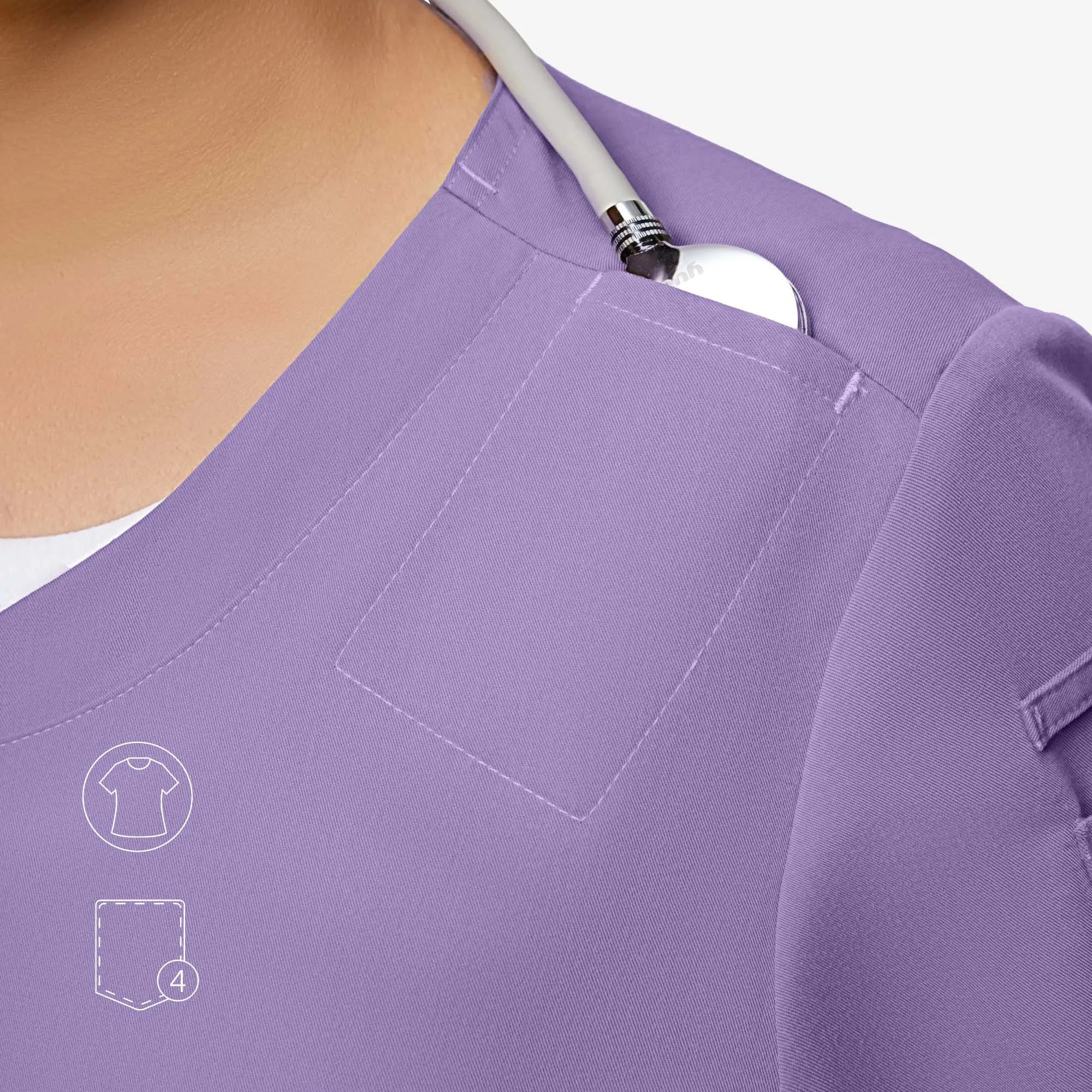 The Evelyn™ scrub top blends style and function with a sweetheart V-neck, tulip hem for ease, and smart pocket placement.