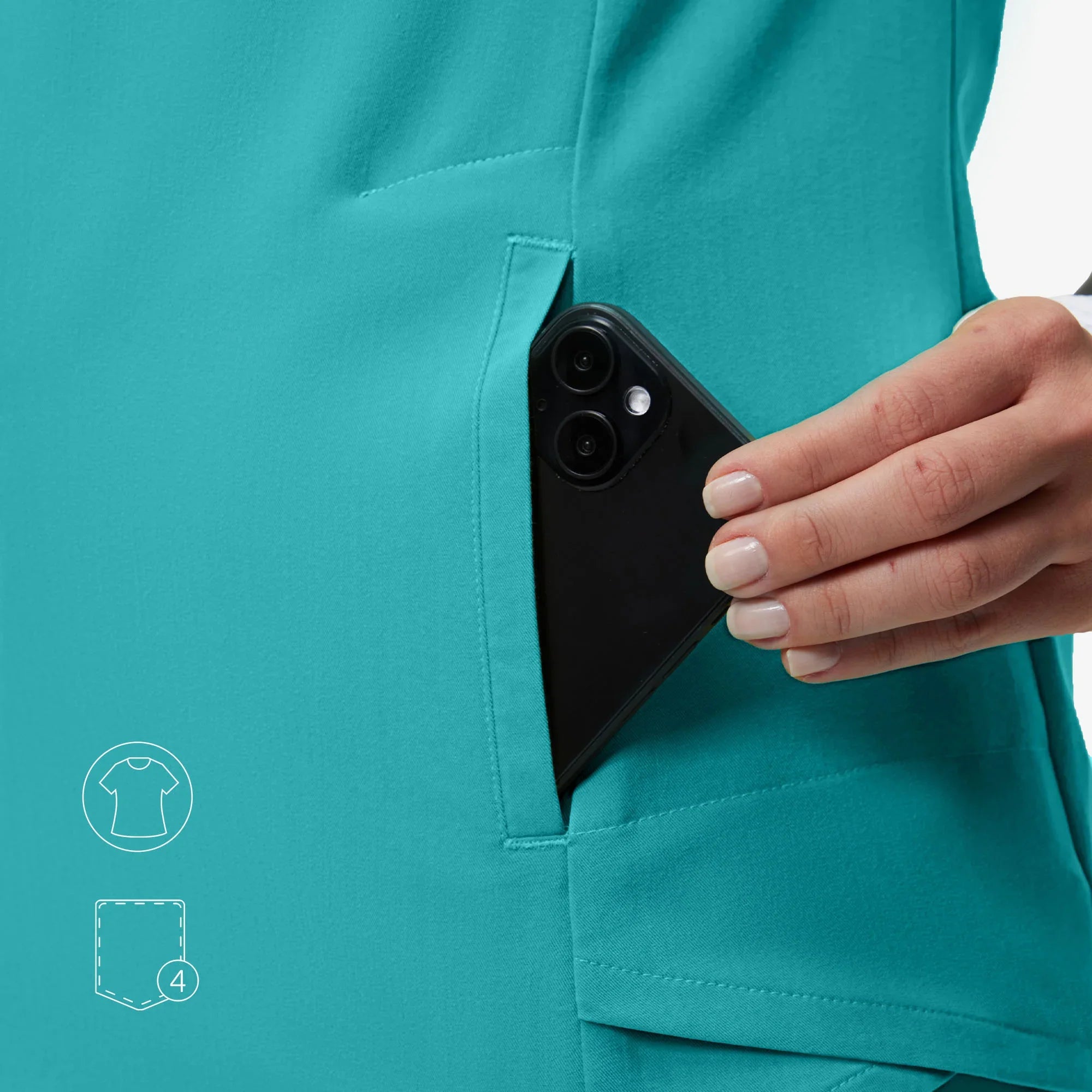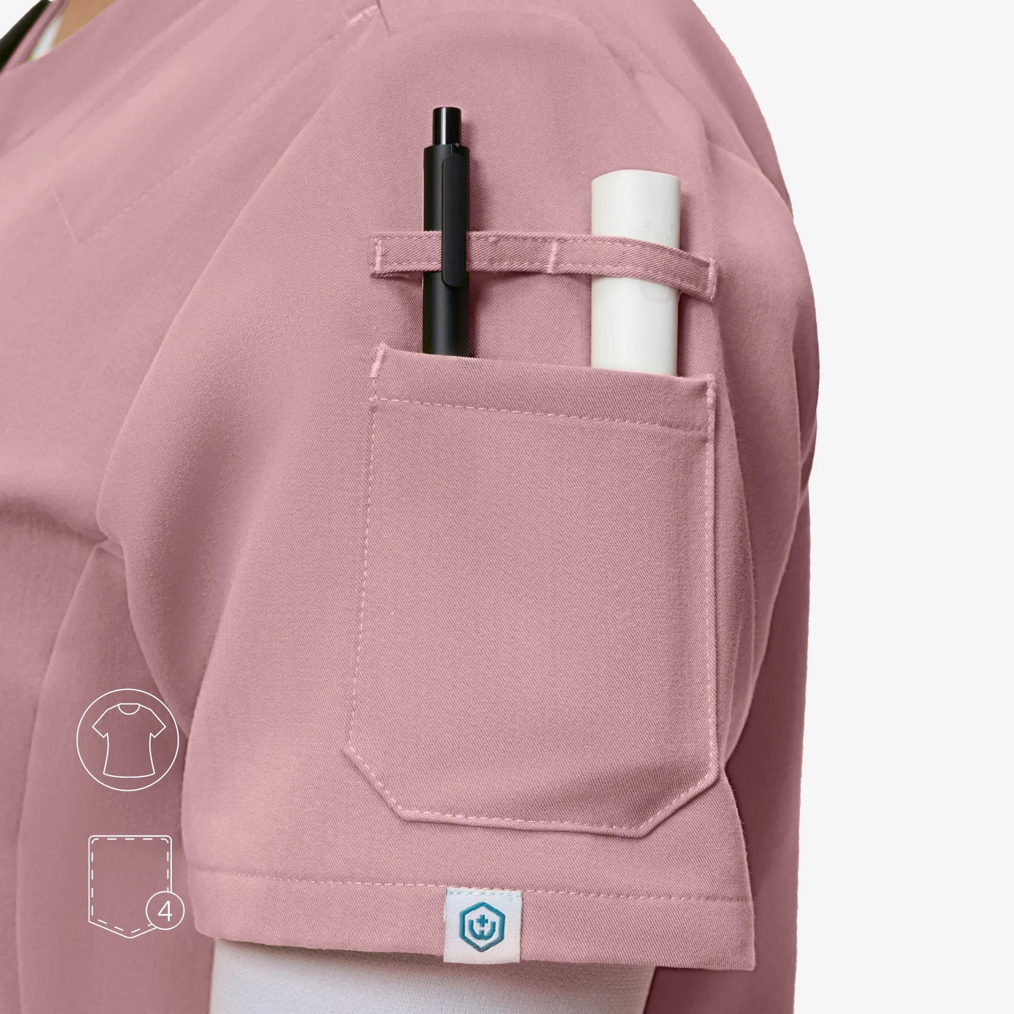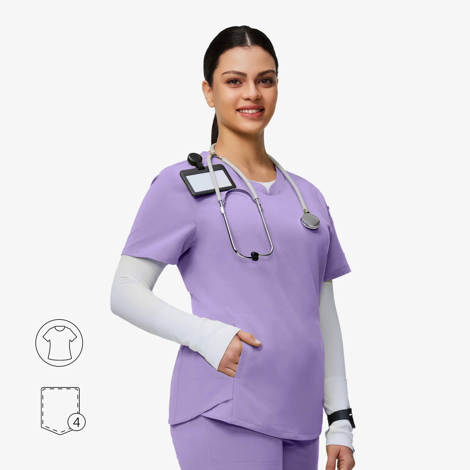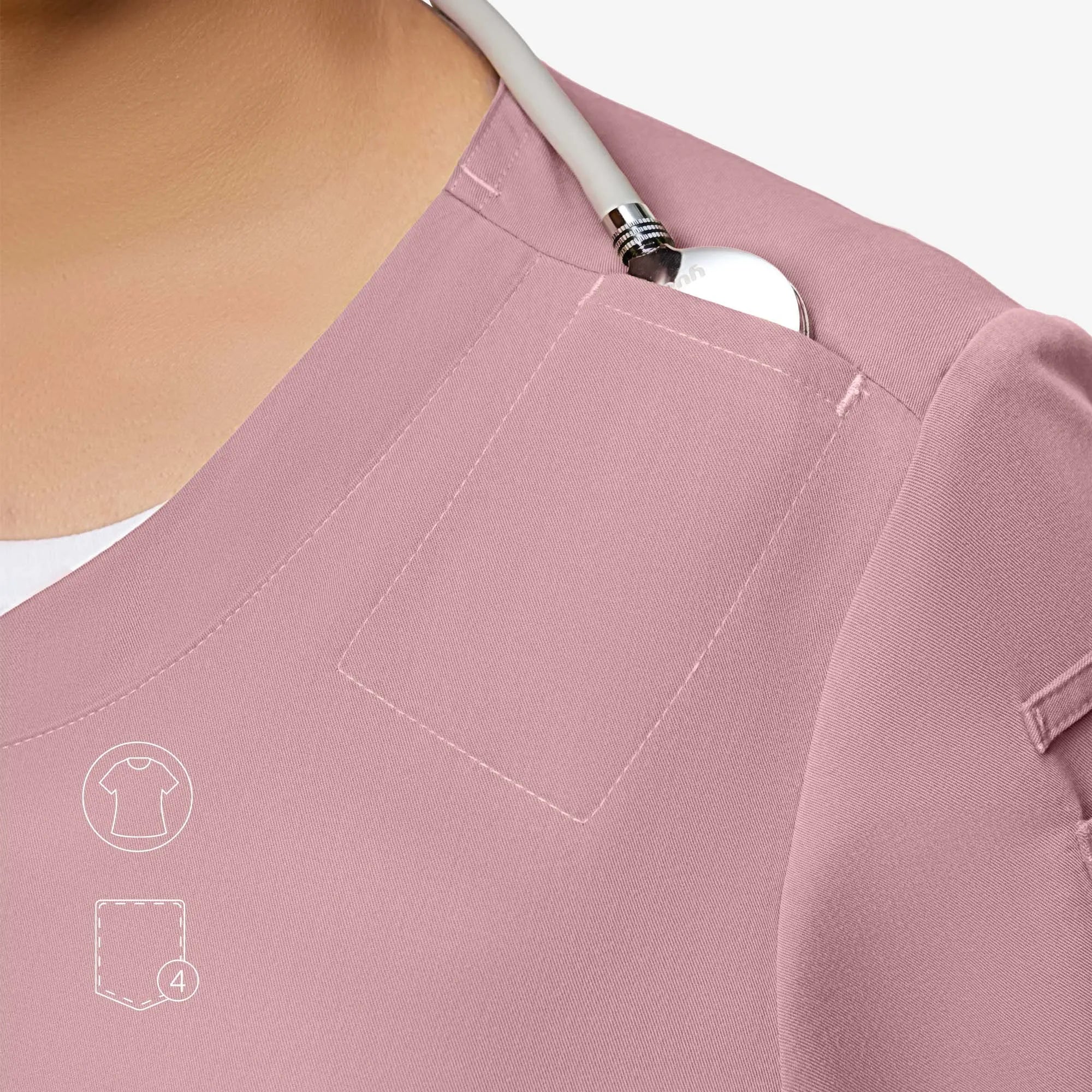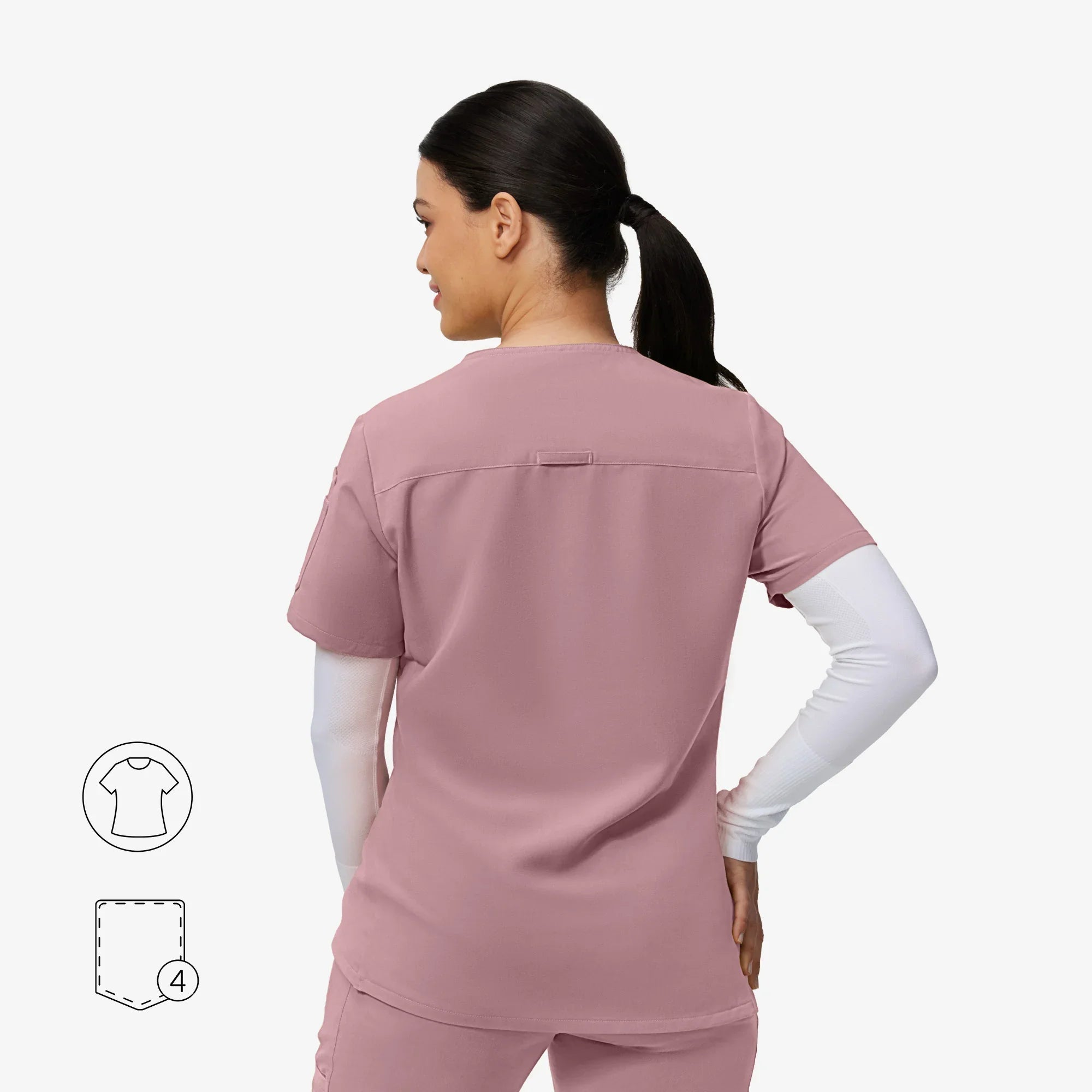 The Evelyn™ scrub top blends style and function with a sweetheart V-neck, tulip hem for ease, and smart pocket placement.