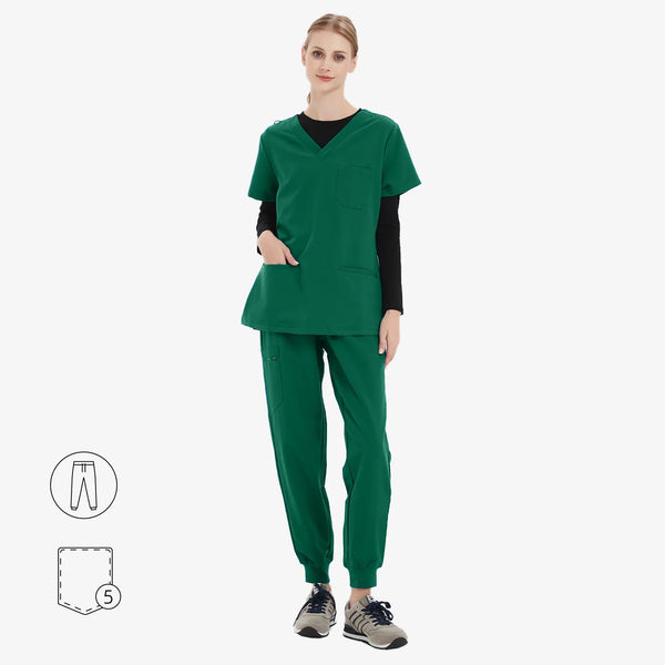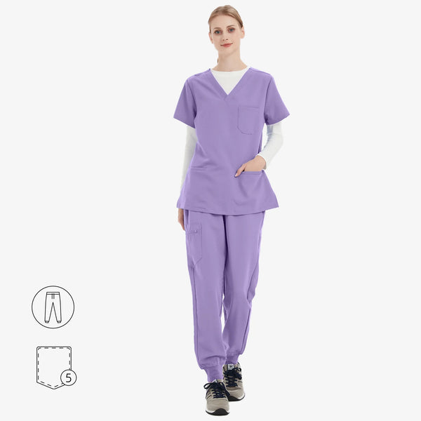 The Avant™ scrub top combines timeless design with a knit ribbed collar, blending style and function for effortless workwear.